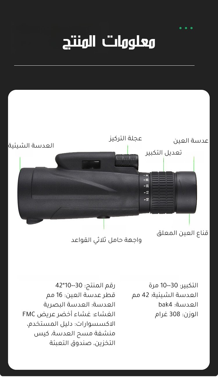 تلسكوب أحادي مع التركيز القابل للتعديل، أداة مساعدة لالتقاط الصور الرائعة في الهواء الطلق