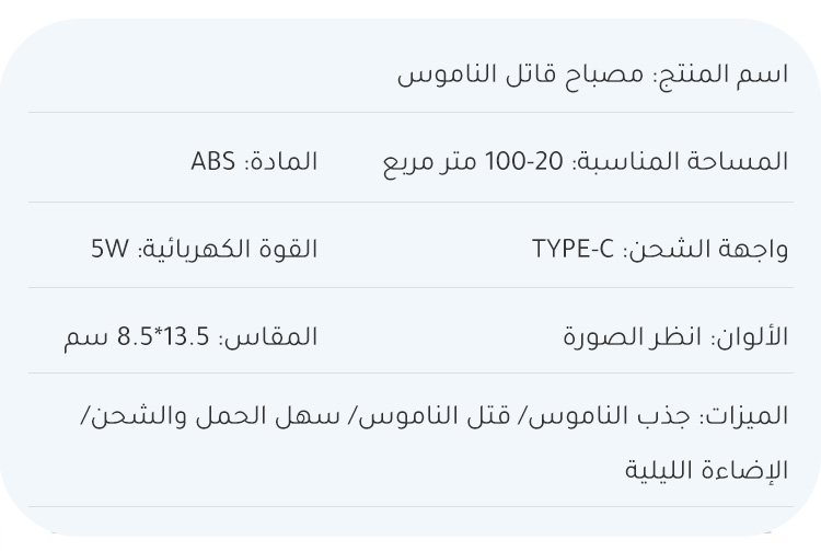 مواصفات المنتج