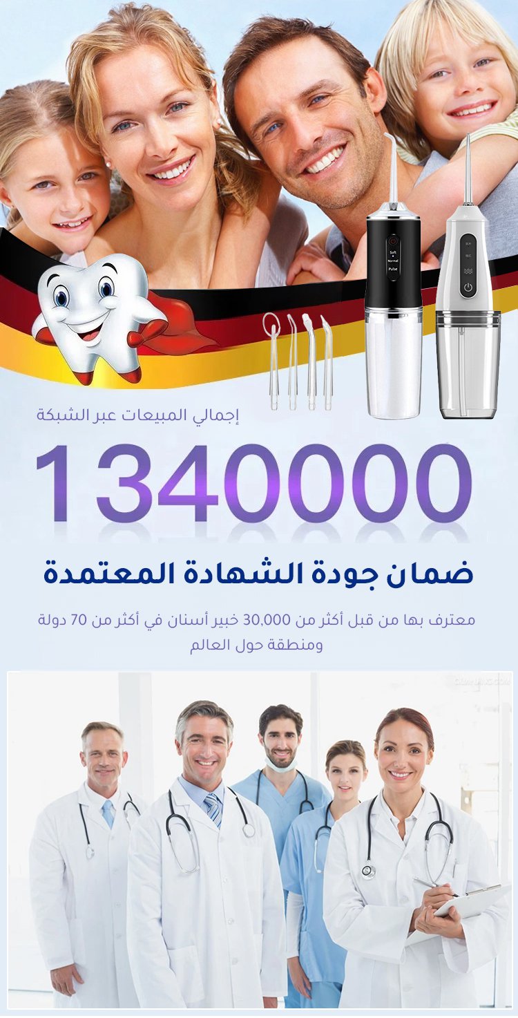 ينظف أسنانك وفمك بالكامل في 30 ثانية! تقنية النبضات الحصرية، التي طورها فريق العناية بالفم الألماني حديثًا، تنظف الفراغات بين الأسنان والفم بعمق دون الإضرار بالأسنان واللثة. يمكن استخدامه لمدة شهر بعد شحنه بالكامل، وهو مناسب لجميع أفراد الأسرة وجميع الأعمار. لم يتبقَّ سوى يوم واحد! اشترِ جهاز تنظيف الأسنان بالماء الآن واحصل على فرشاة أسنان كهربائية مجانًا!