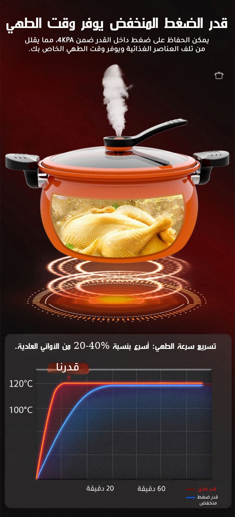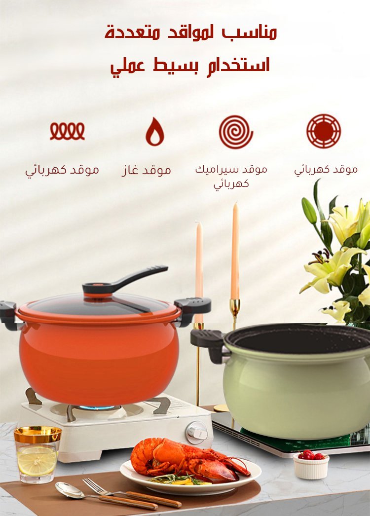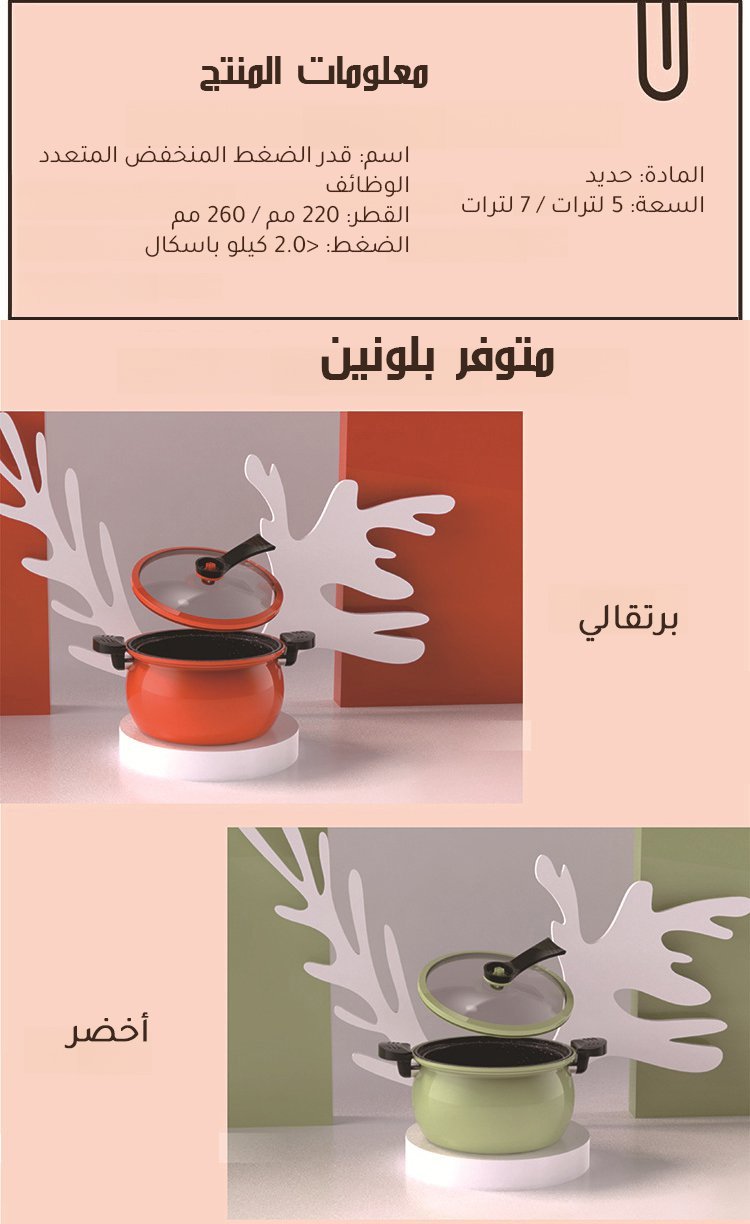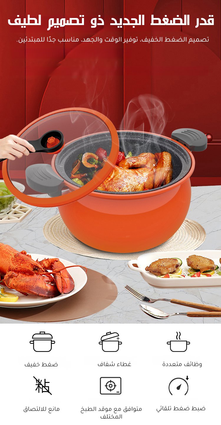 قدر الضغط المنخفض الجديد ذو التصميم اللطيف العصري -- سعة 7L