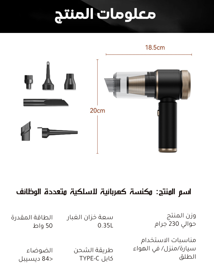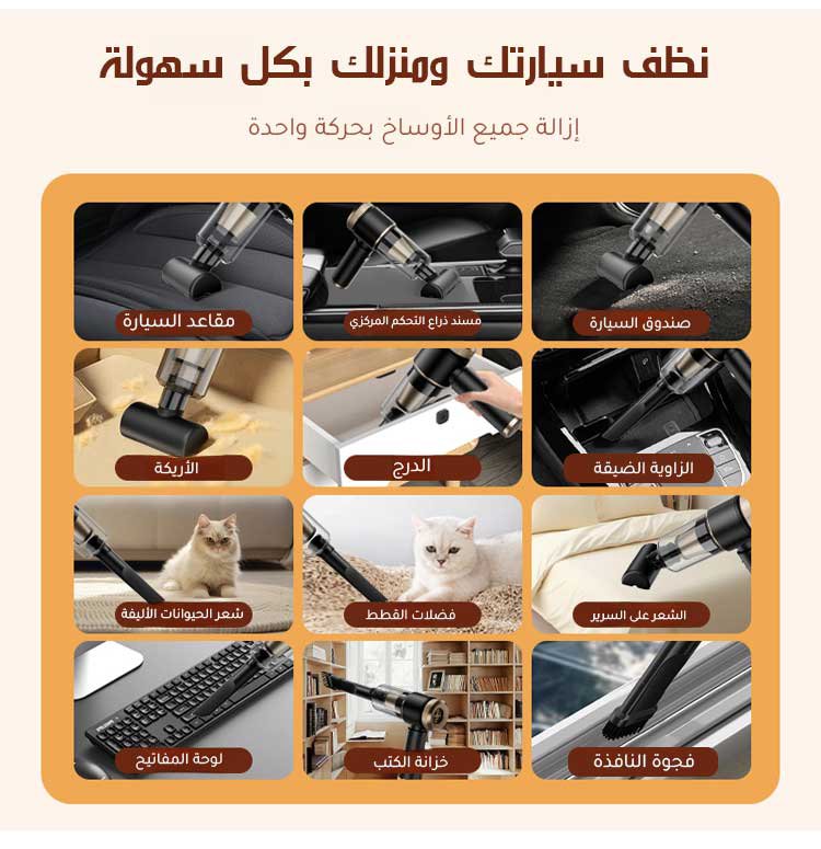 مكنسة كهربائية لاسلكية محمولة باليد للسيارات