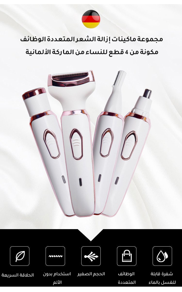 مجموعة ماكينات إزالة الشعر المتعددة الوظائف مكونة من 4 قطع للنساء من الماركة الألمانية