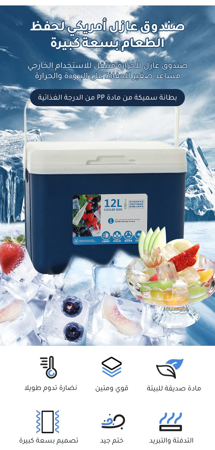 صندوق عازل أمريكي لحفظ الطعام بسعة كبيرة للاستخدام الخارجي