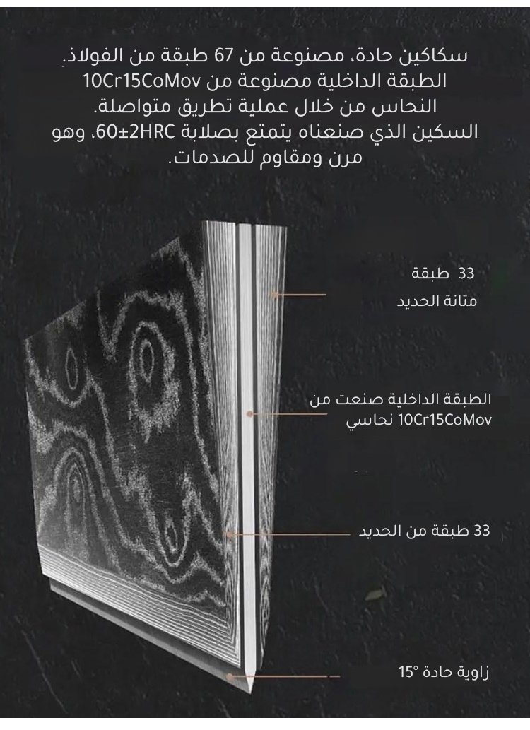 مجموعة سكاكين مزينة بنقوش المطرقة مكونة من ثلاث قطع، سكين تقطيع وسكين إزالة العظام، وسكين بتصميم V