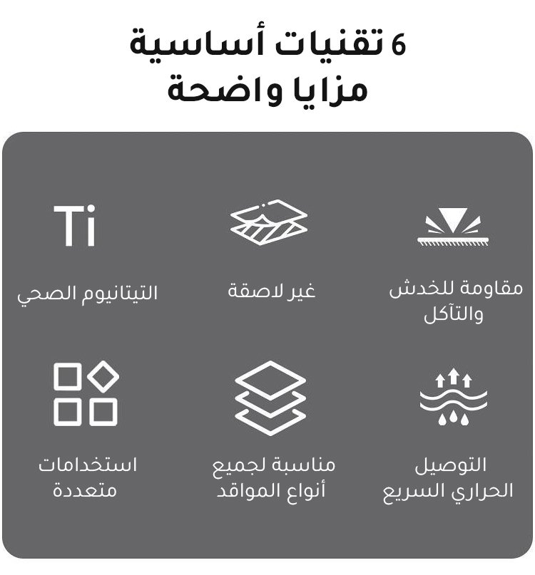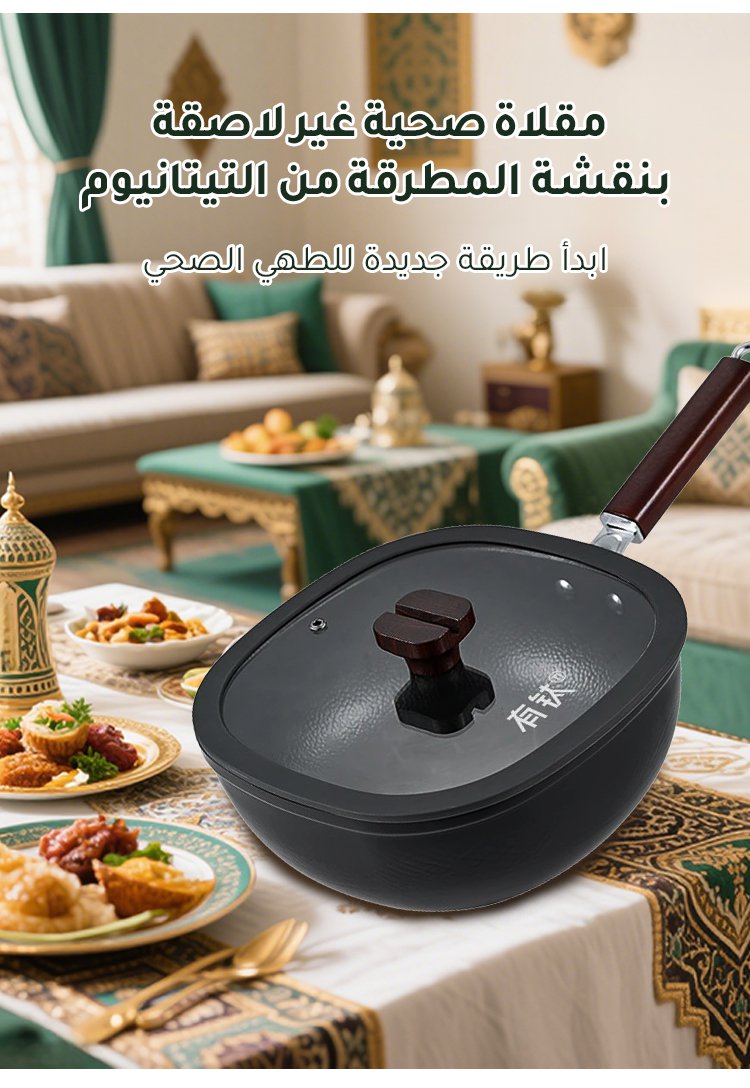 مقلاة مربعة غير لاصقة بنقشة المطرقة من التيتانيوم