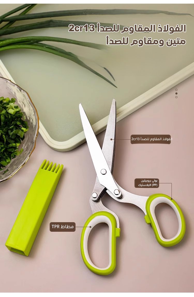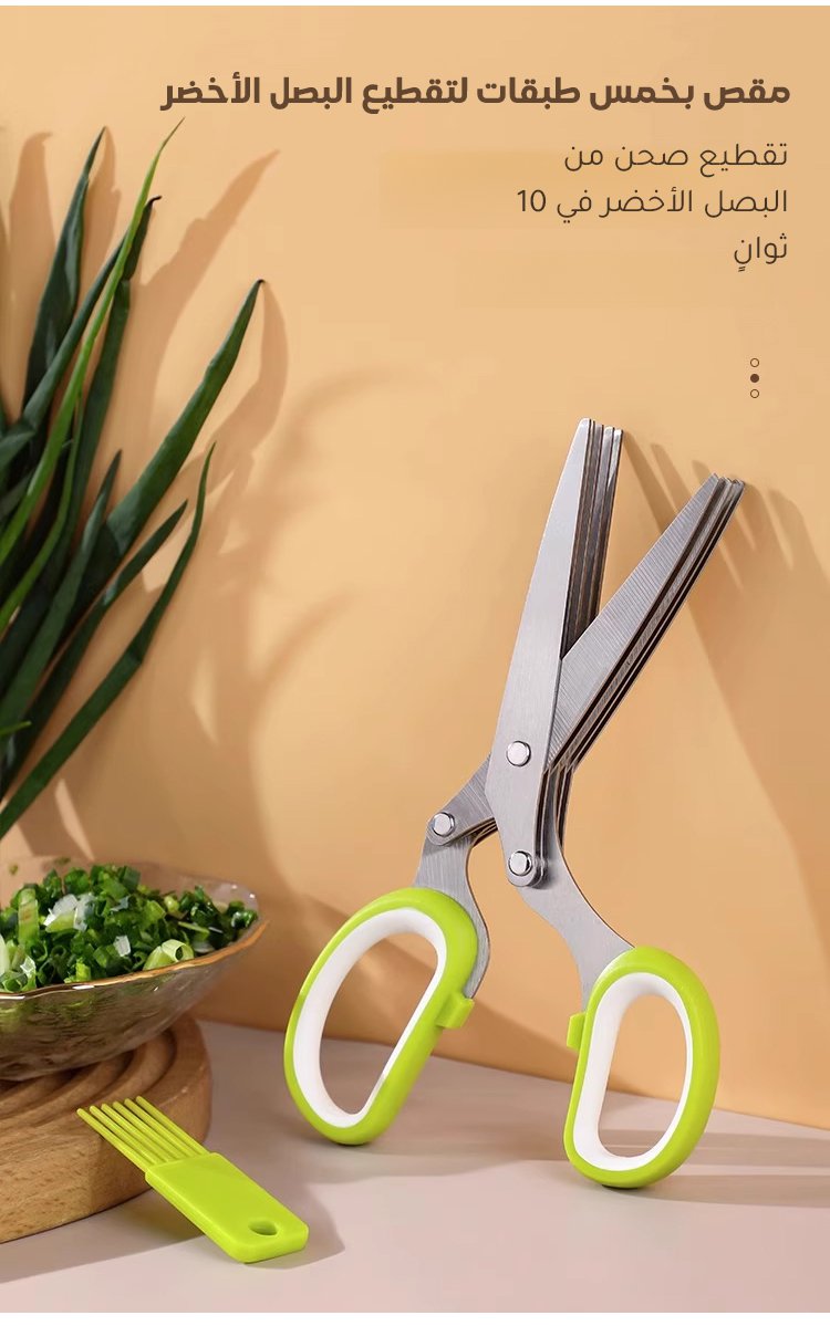 مقص بخمس طبقات من الفولاذ المقاوم للصدأ لتقطيع البصل الأخضر
