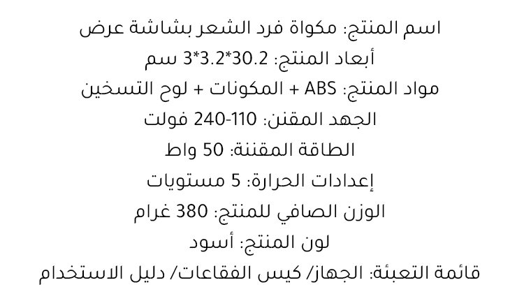 مواصفات المنتج