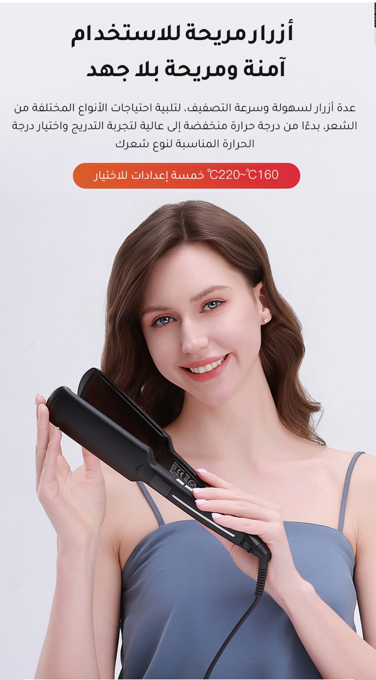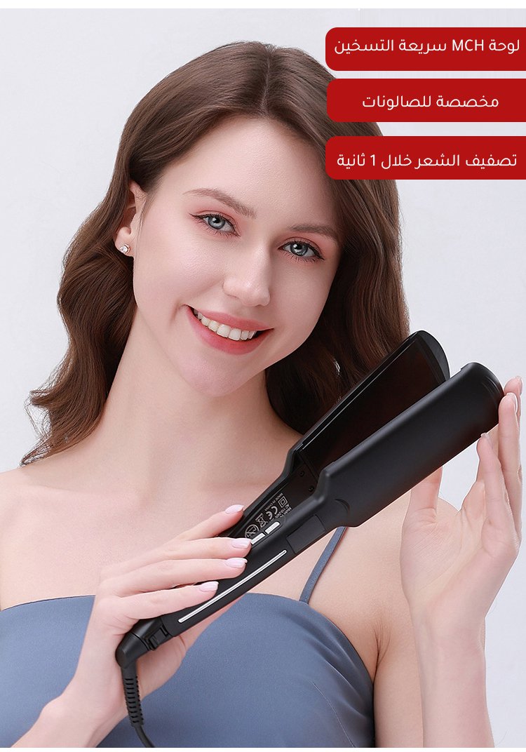 (نعومة في 1 ثانية) مكواة فرد الشعر بلوح عريض دون إتلاف الشعر